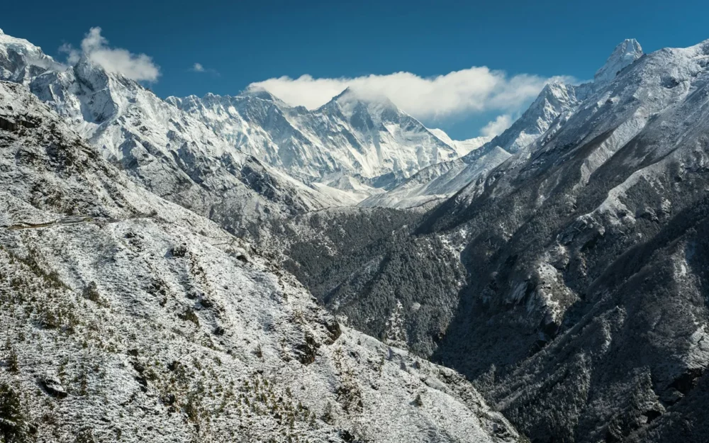 Once you land at Kala Patthar (5644 m), you will find yourself enclosed by the icy giants of Kanchenjunga (8,586 m), Lhotse (8,516 m), Manaslu (8,163 m), Everest (8,848 m), Nuptse (7,851 m), Changtse (7,583 m), Gaurishankar (7,134 m), Ganesh (7,422 m), Langtang (7,246 m), Pumori (7,161 m), Ama Dablam (6,812 m), Khumbutse (6,636 m), Lobuche (6,119 m), and several more.