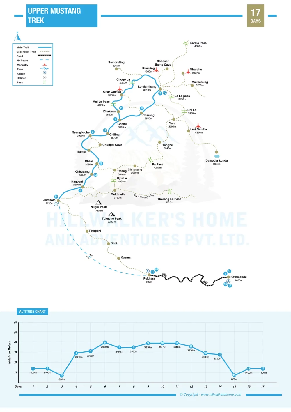 Your trek plan includes slow walking stages and waits at Lo-Manthang to help you adjust to the growing altitude pressure. Going slow while walking plus staying hydrated with water protects you from altitude sickness.